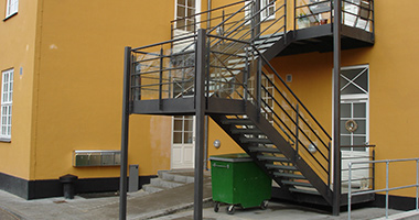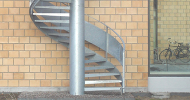 Den typiske udendørs trappe er konstrueret i varmtgalvaniseret stål.